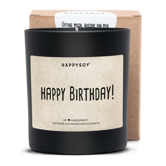 HAPPYSOY Duftkerze mit Spruch - Happy Birthday - und wundervollem Duft