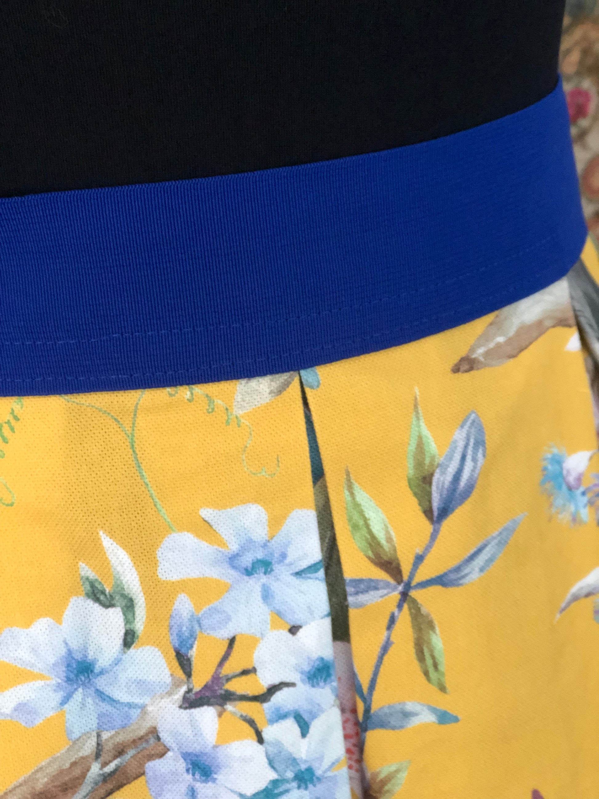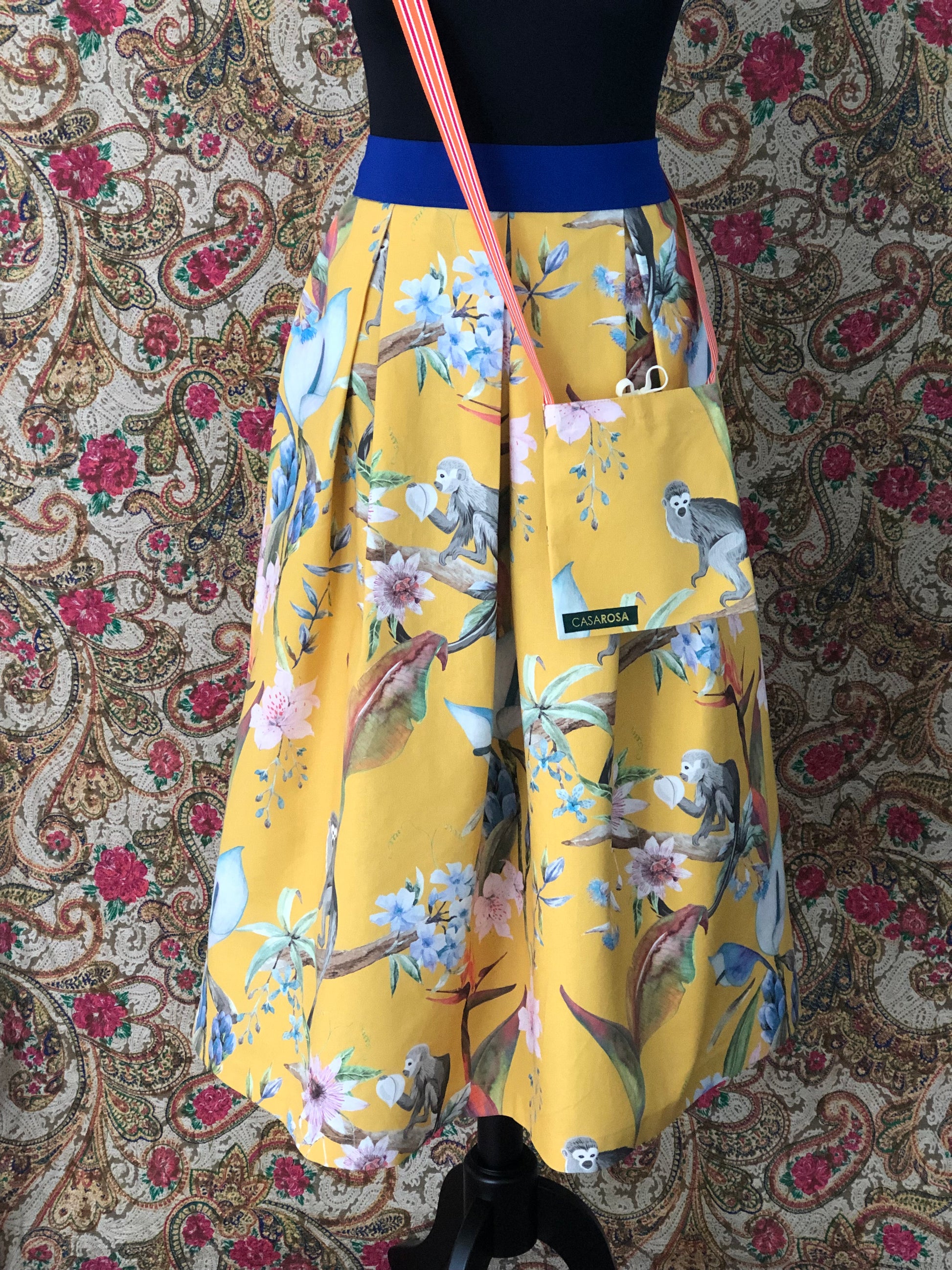 Die Damen-Röcke der Marke CASAROSA verbinden Lässigkeit mit Eleganz und höchstem Tragekomfort. Das Modell "Fauna&Flora gelb" ist aus 100% Bio-Baumwolle, die Grundfarbe ist ein sonniger Gelbton, aufgedruckt ist ein wunderschönes, florales Muster. Der Rock ist in Falten gelegt und hat einen weichen, bequemen Gummibund in royalem Blau und eine Einschubtasche seitlich. Der Rock kann in der Taille oder hüftig getragen werden. Die Länge des Rockes (ab Bund-Unterkante gemessen) beträgt ca. 80 cm.
